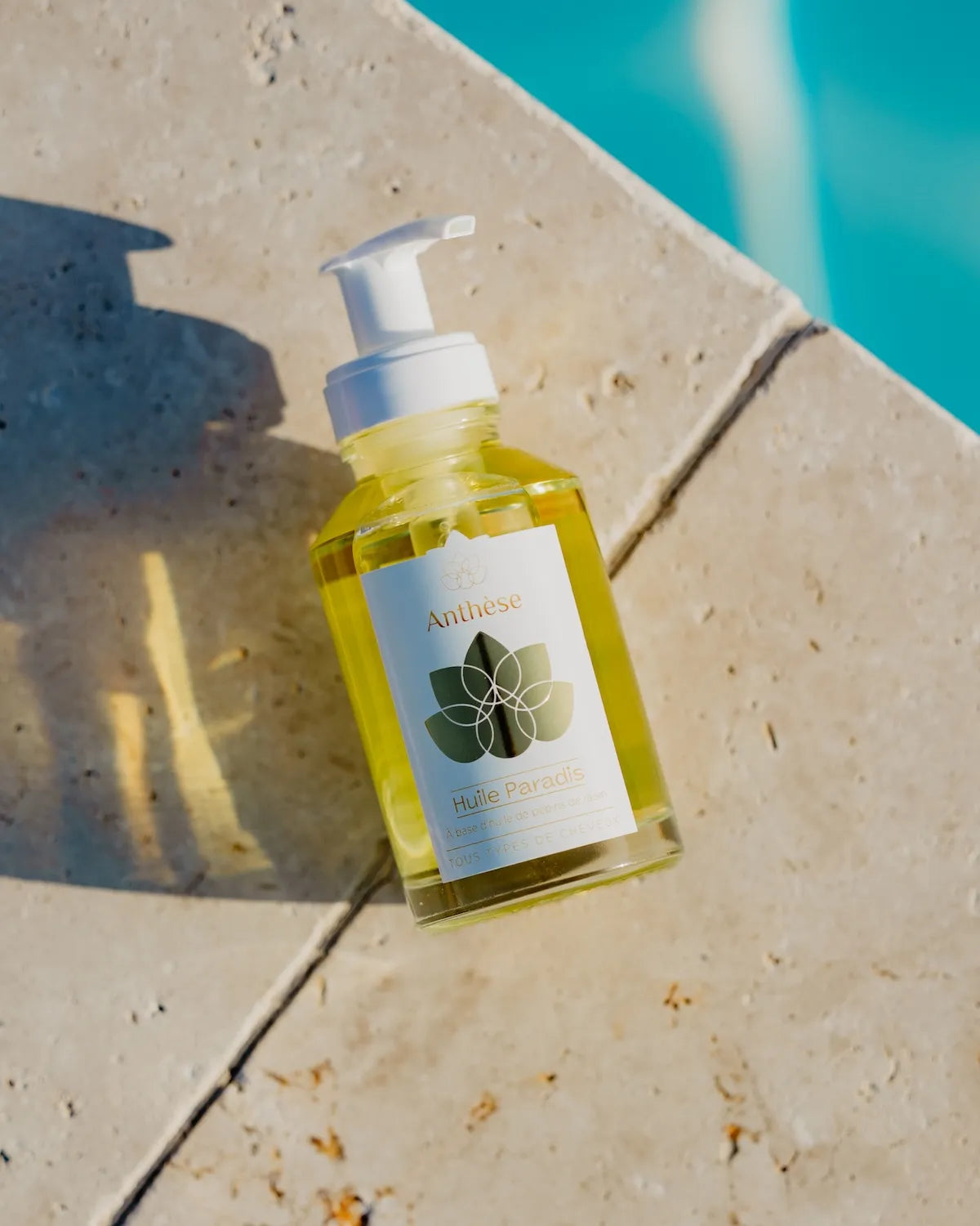 - Huile Paradis : appliquez quelques gouttes sur les longueurs avant le brushing pour la protection thermique, ou après séchage pour la brillance.